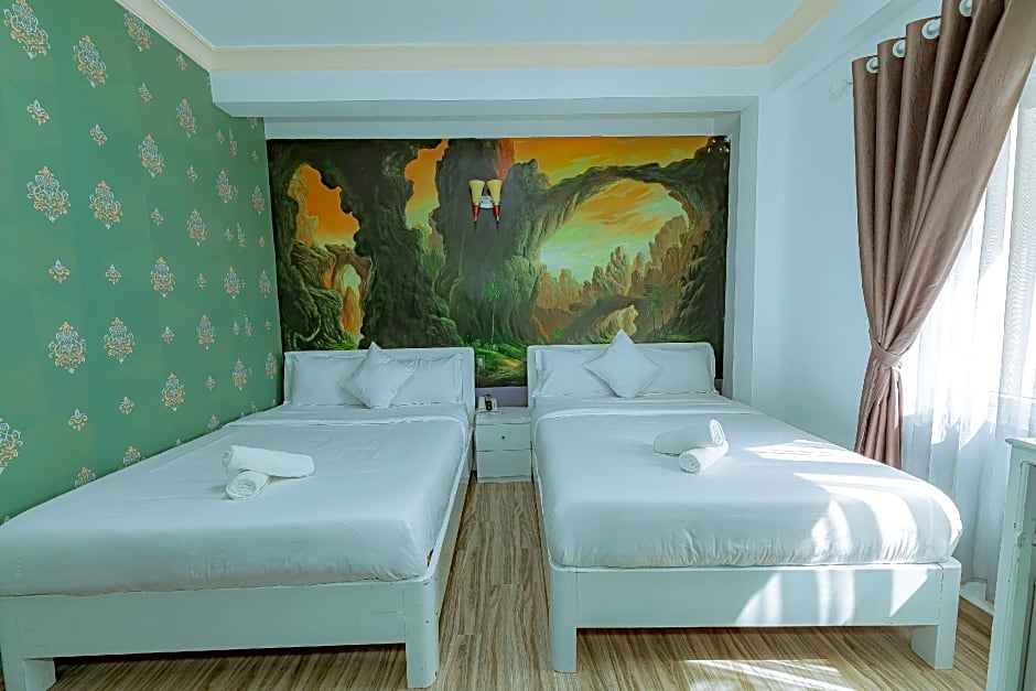 The quadruple room includes a private bathroom, well-fitted with a shower, a bidet, a hairdryer and slippers. This quadruple room features a wardrobe, a carpeted floor, a flat-screen TV and city views. The unit offers 2 beds.
